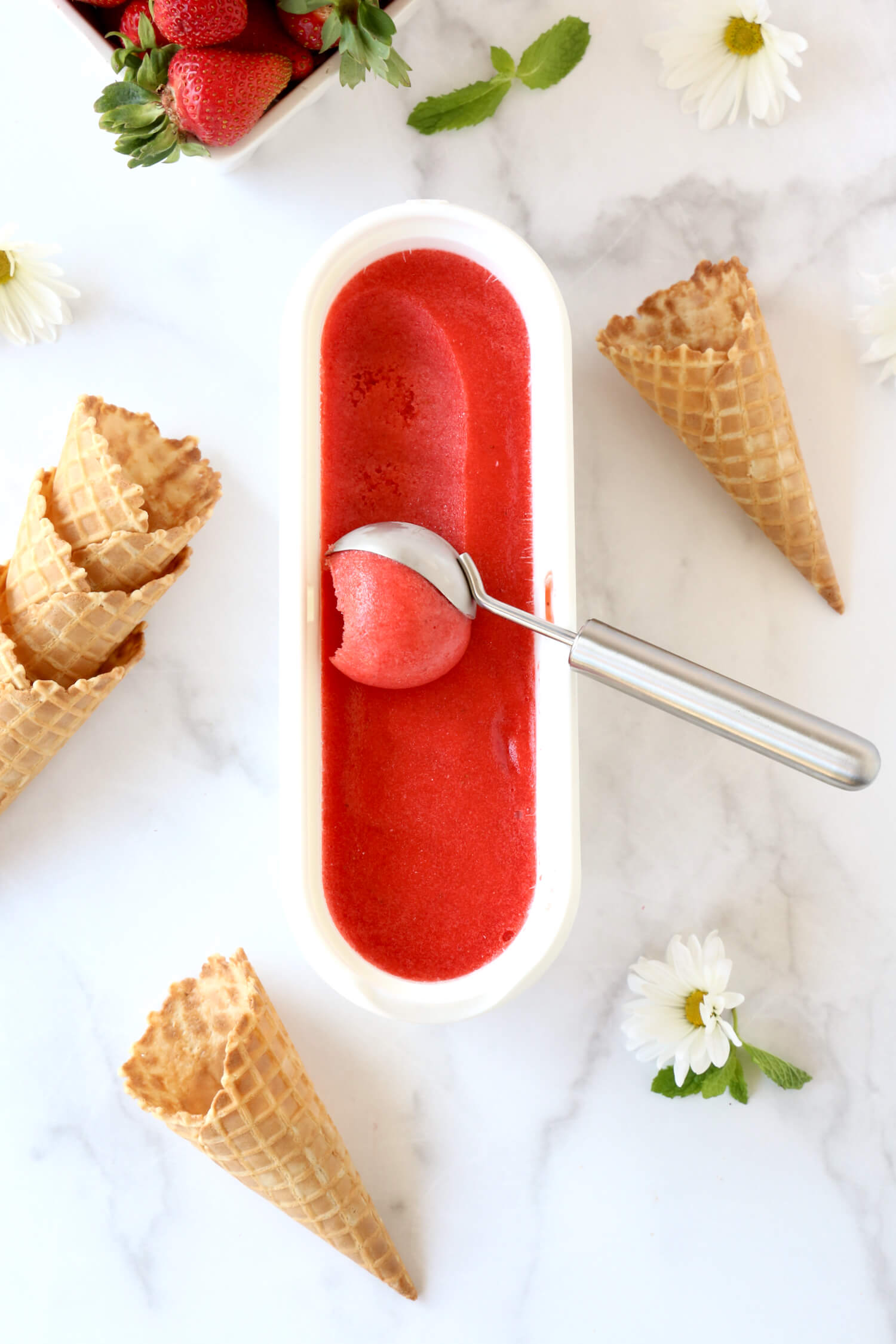 Ingredients in homemade strawberry sorbet ; · let the syrup cool. It's so simple to make and doesn't taste like a "healthier" treat. Indulge in something sweet with these light, tasty dessert treats. · cook down the other pint of strawberries with 2 cups of water and 1/2 sugar until it's a syrup.